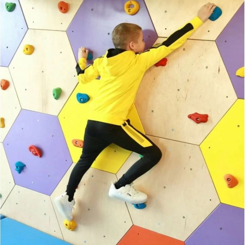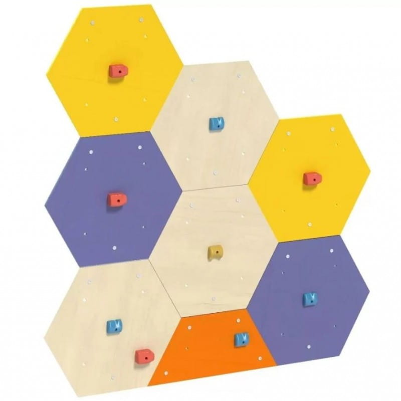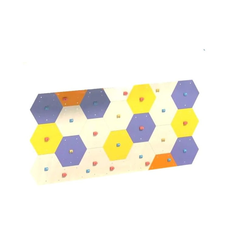 Super ścianka wspinaczkowa, którą możesz stworzyć, ,,ułożyć" na ścianie wedle swojego własnego pomysłu. Około 7m2 ścianki wspinaczkowej! Sześciokąty tworzą piękny efekt plastra miodu, który można dopasować do każdego kształtu lub przestrzeni. Każdy pełny element ma przygotowanych 5 miejsc do których możesz zamontować kamienie do wspinaczki, dzięki czemu poziom trudności można dostosować do umiejętności i preferencji a układ wspinaczki zmieniać co jakiś czas. Ta ścianka wspinaczkowa przeniesie Twoje zmysły na wyższy poziom i będzie pięknie prezentować się w Twojej sali!