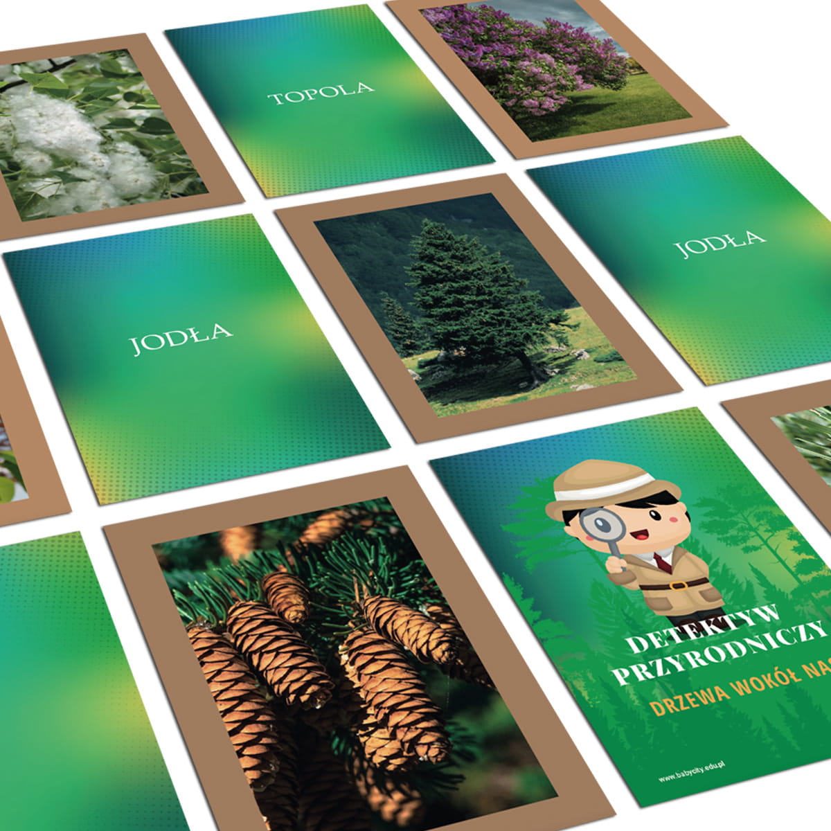 Na kartach przedstawione są fotografie najbardziej znanych drzew. Na odwrocie każdej znajduje się napis, mówiący o tym jakie to drzewo.