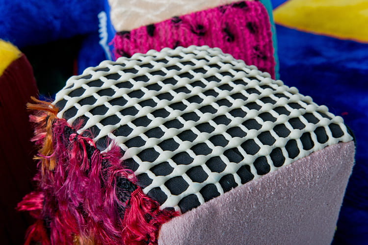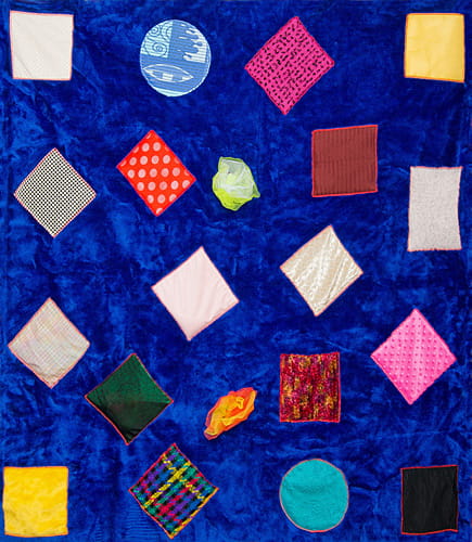 Na materiałowym podkładzie naszyte są pola sensoryczne. Są to różnej wielkości naszyte płaty różnych materiałów.