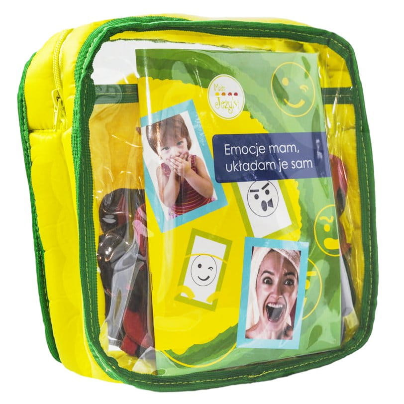 Możliwości jest ogrom. Do produktu Emocje mam układam je sam dołączona została książeczka, która zawiera mnóstwo opisów zabaw oraz dwa zestawy kart. Jedne przedstawiają emotikonki, które można odwzorować z załączonych elementów (podwójnie – czyli jednocześnie na obu buziach).