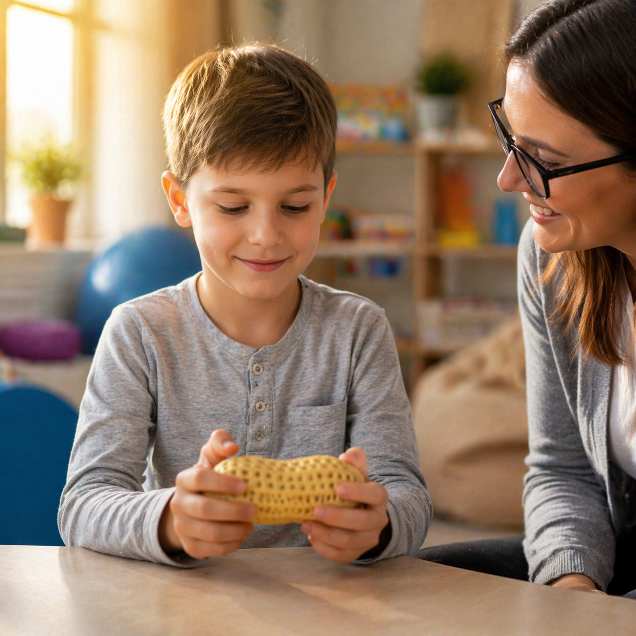 Regularne korzystanie z gniotka poprawia precyzję ruchów i rozwija motorykę małą, a jednocześnie pomaga dziecku wyciszyć się i lepiej skupić na zadaniu. Delikatny nacisk i powtarzalny ruch ściskania wspierają regulację napięcia oraz dostarczają potrzebnych bodźców sensorycznych, co ma szczególne znaczenie w terapii integracji sensorycznej.