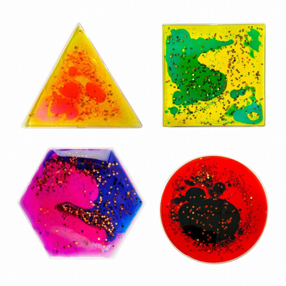 Zestaw sensorycznych gniotków geometrycznych z brokatem – 4 szt.