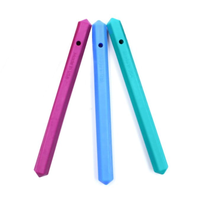 MEGA Krypto-Bite® firmy ARK to mocny gryzak do ręki, nie posiada w komplecie sznurka, ale ma otwór na jednym końcu, na wypadek gdyby użytkownik chciał go zawiesić na szyi.