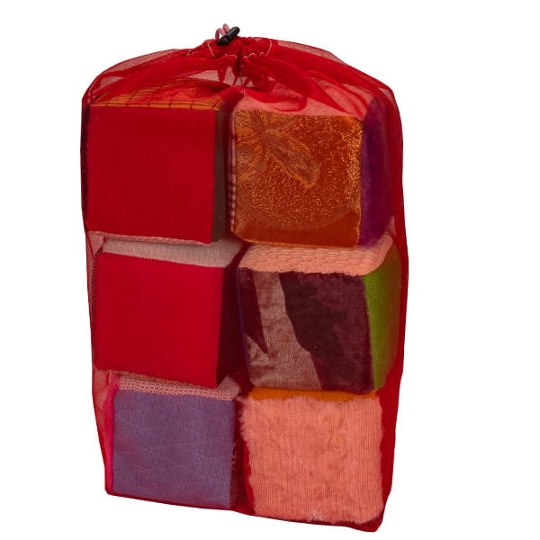 Pomoc jest przeznaczona dla dzieci w wieku 0-10 lat. Kostki sensoryczne są zapakowane są w worek.