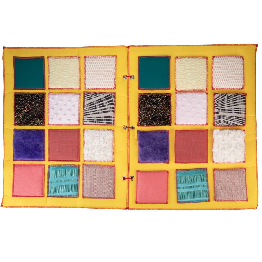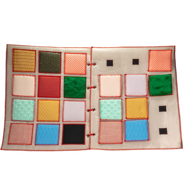 Jest to książka wykonana z miękkiego materiału, która podczas zabawy dostarcza wielu wrażeń sensorycznych, stymuluje umiejętność odwzorowania zarówno wzrokowego jak i dotykowego, usprawnia motorykę małą, ćwiczy kojarzenie i pamięć.
