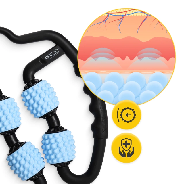 Zadbaj o odprężenie i regenerację dzięki ręcznemu masażerowi. Jego obrotowe rolki z wypustkami skutecznie rozluźniają napięte mięśnie, poprawiają krążenie i wspomagają regenerację – idealne rozwiązanie po wysiłku fizycznym, intensywnym dniu czy terapii sensorycznej.