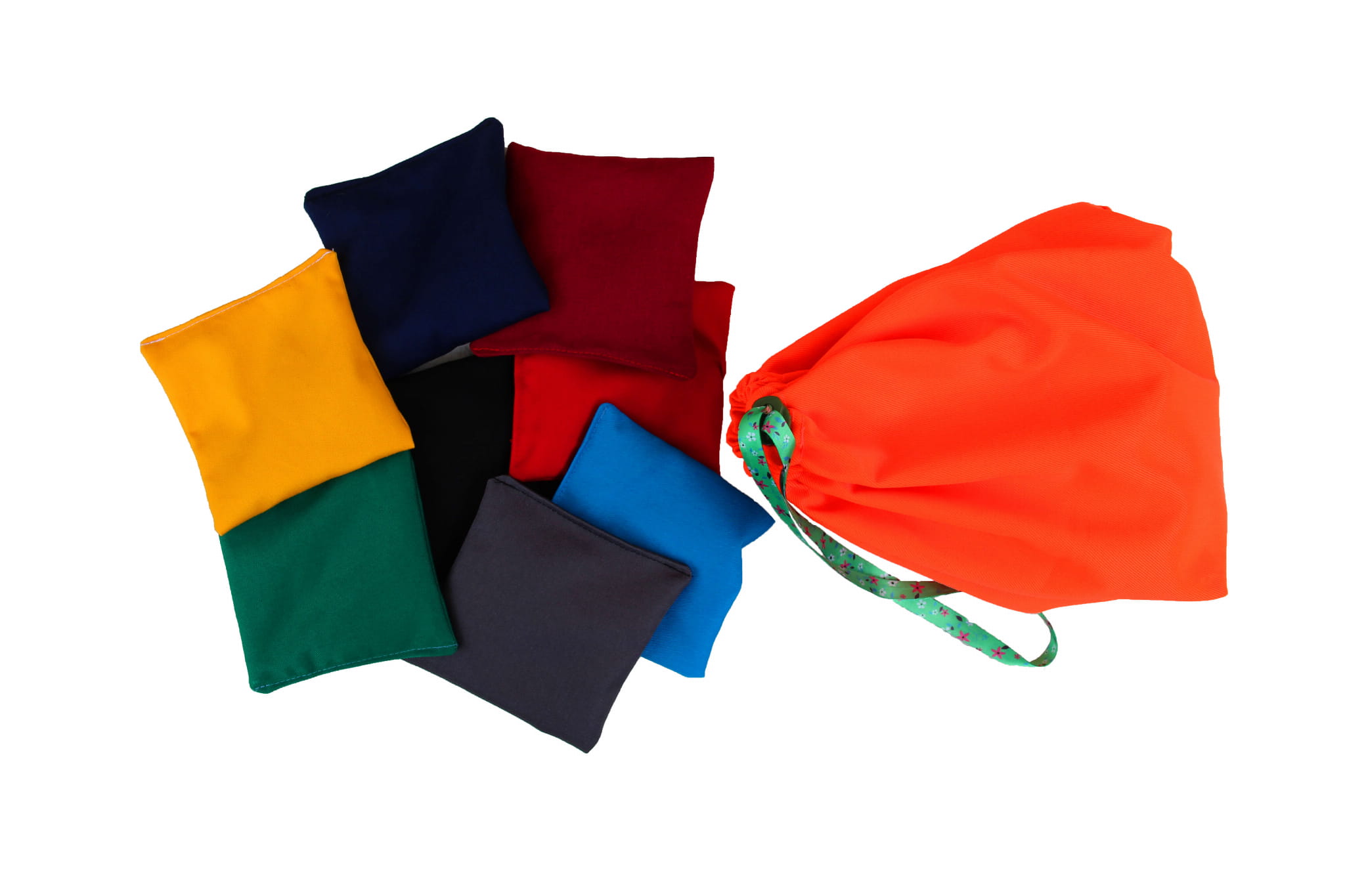 Komplet składa się z 8 par poduszeczek o wymiarach 10 x 10 cm, uszytych z różnokolorowej gładkiej bawełny o maksymalnie zróżnicowanym wypełnieniu oraz wadze.
