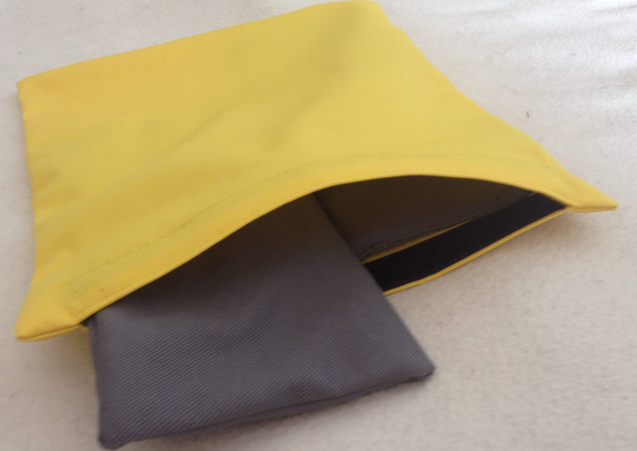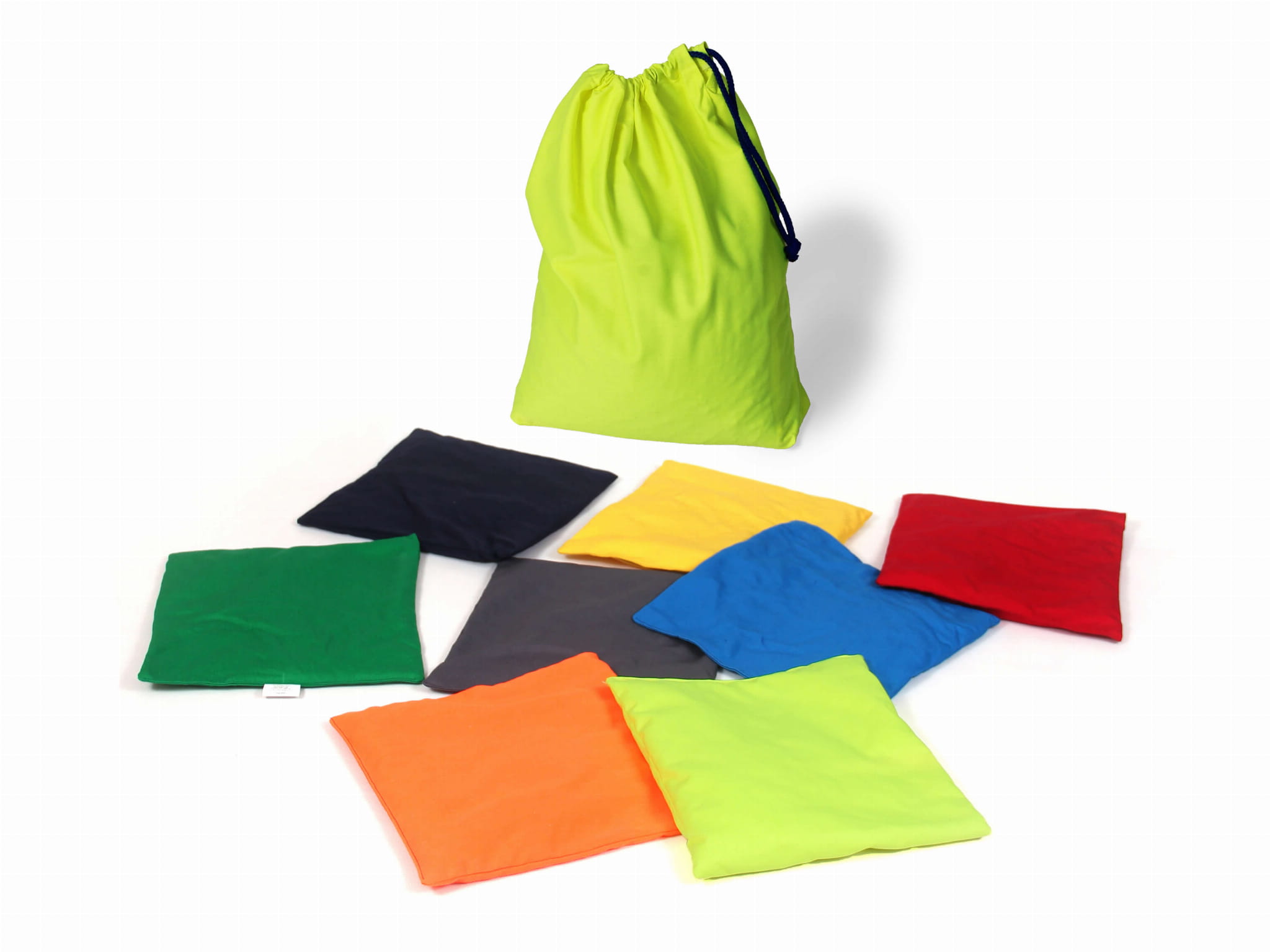 Wszystkie elementy uszyte są z tkanin bawełnianych (certyfikat Oeko-Tex®) w jednolitych różnych kolorach, a kieszenie zamykane są na rzep.