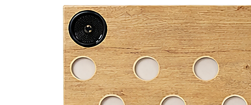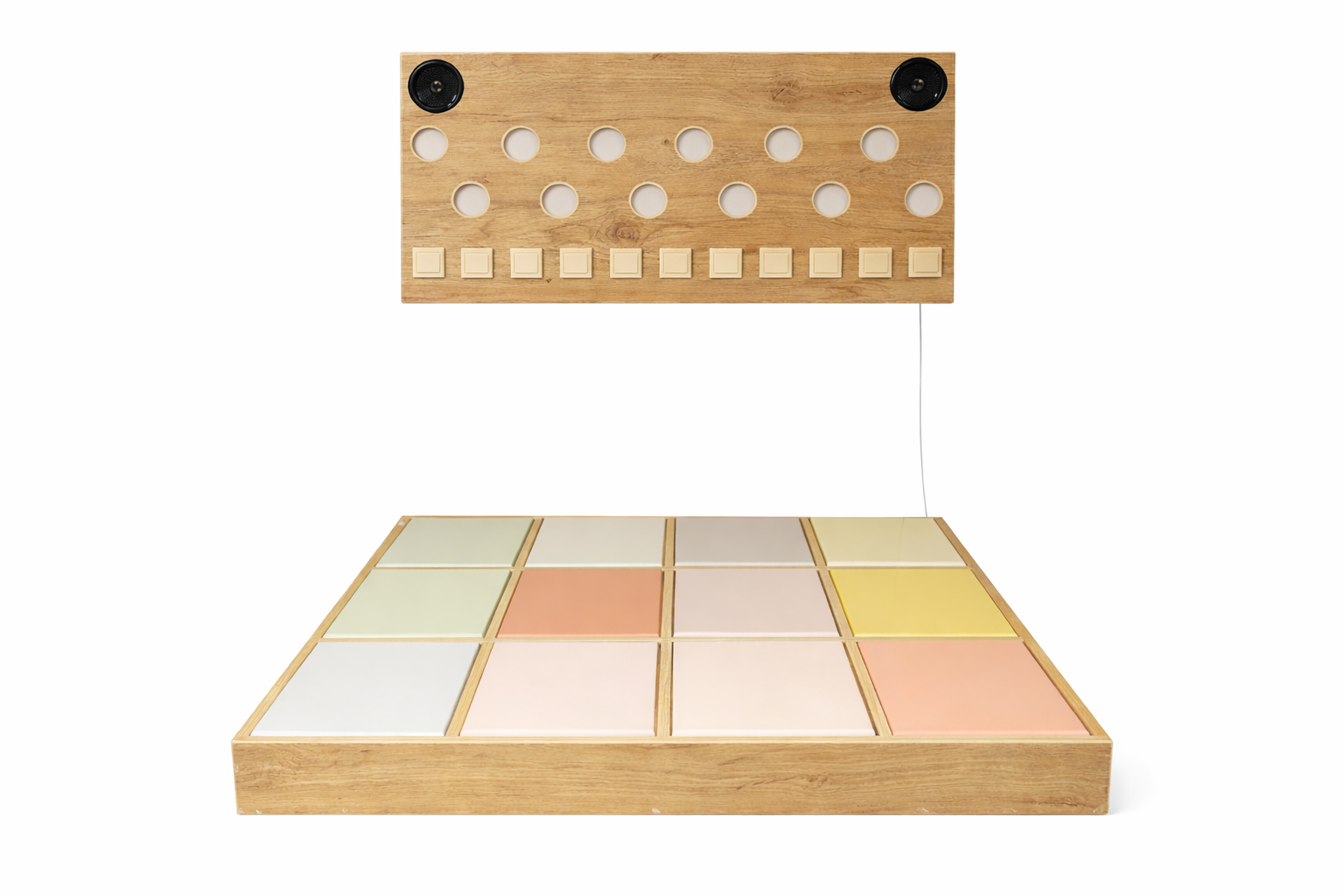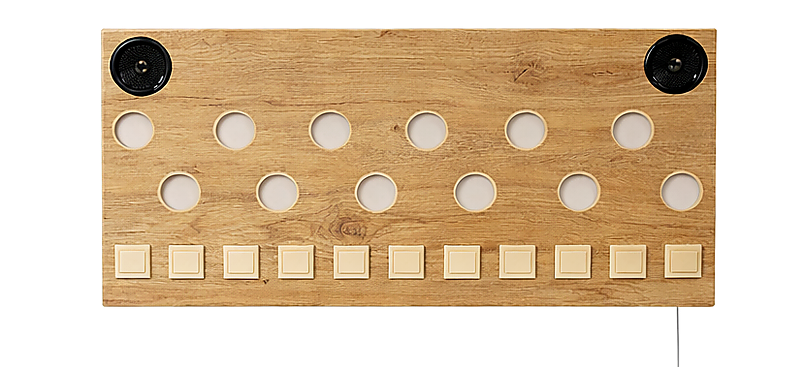Każde pole emituje światło po nacisku i uruchamia dźwięk (gong) odpowiadający danej płycie.