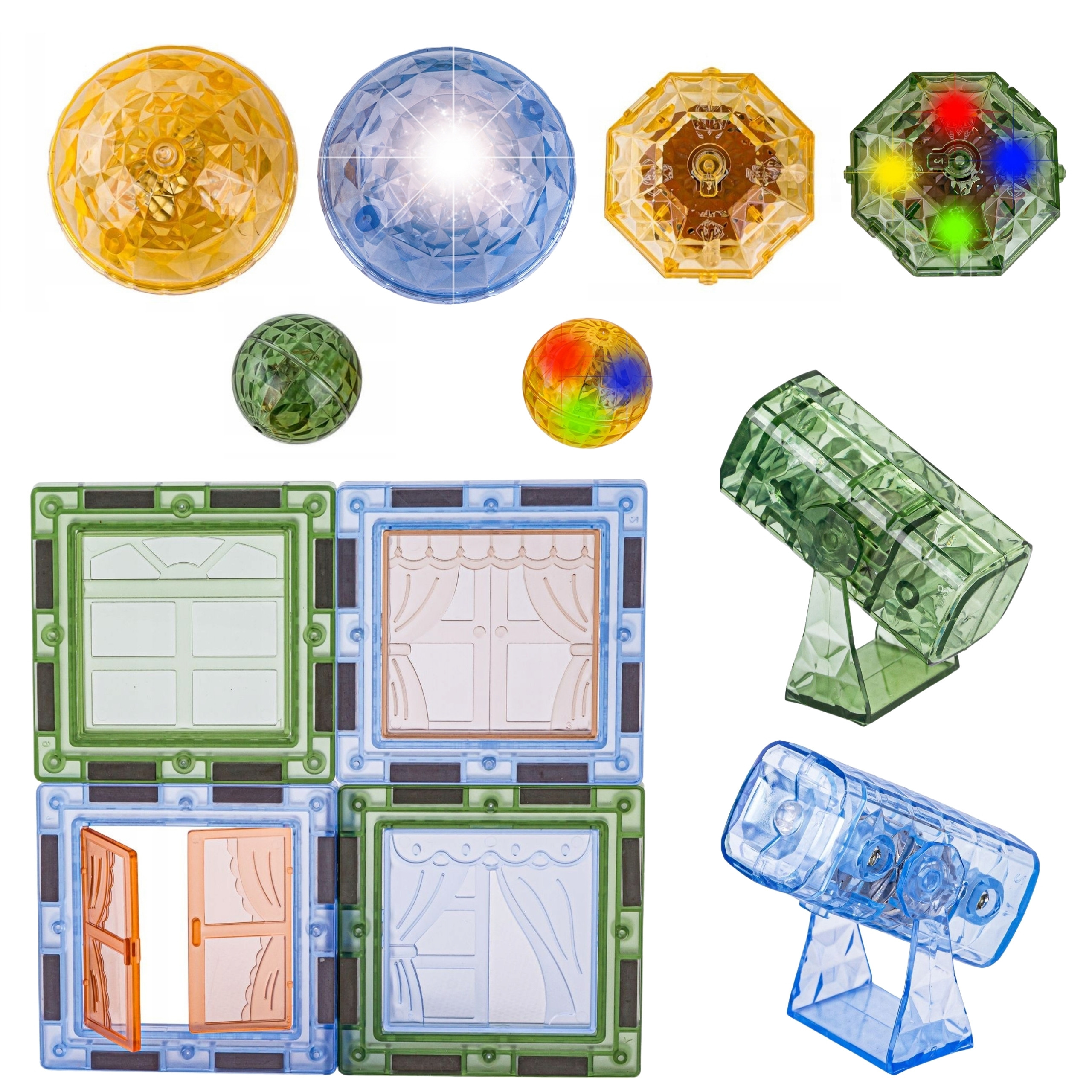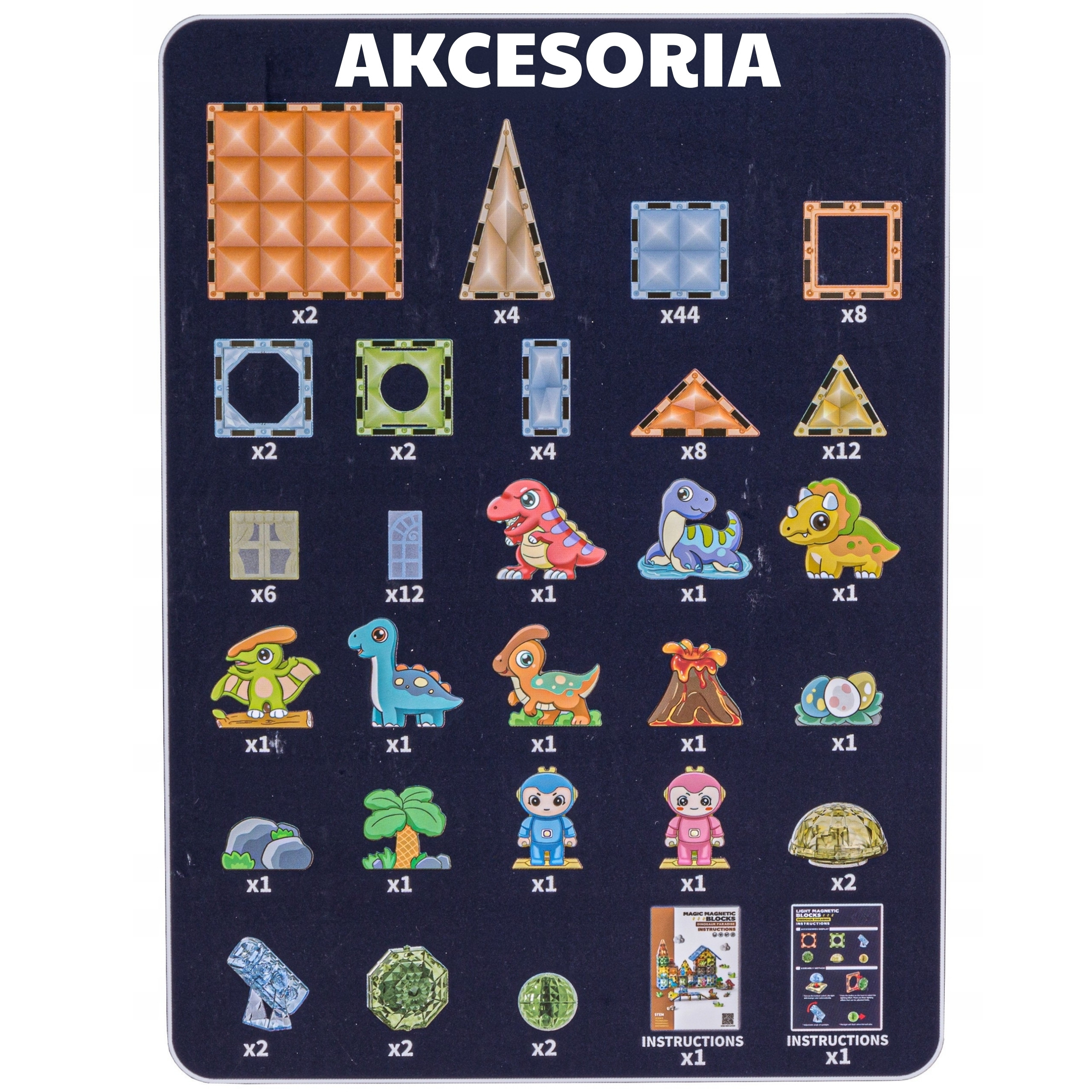- - Klocki magnetyczne w różnych kształtach (kwadraty, trójkąty, okna, dachy)