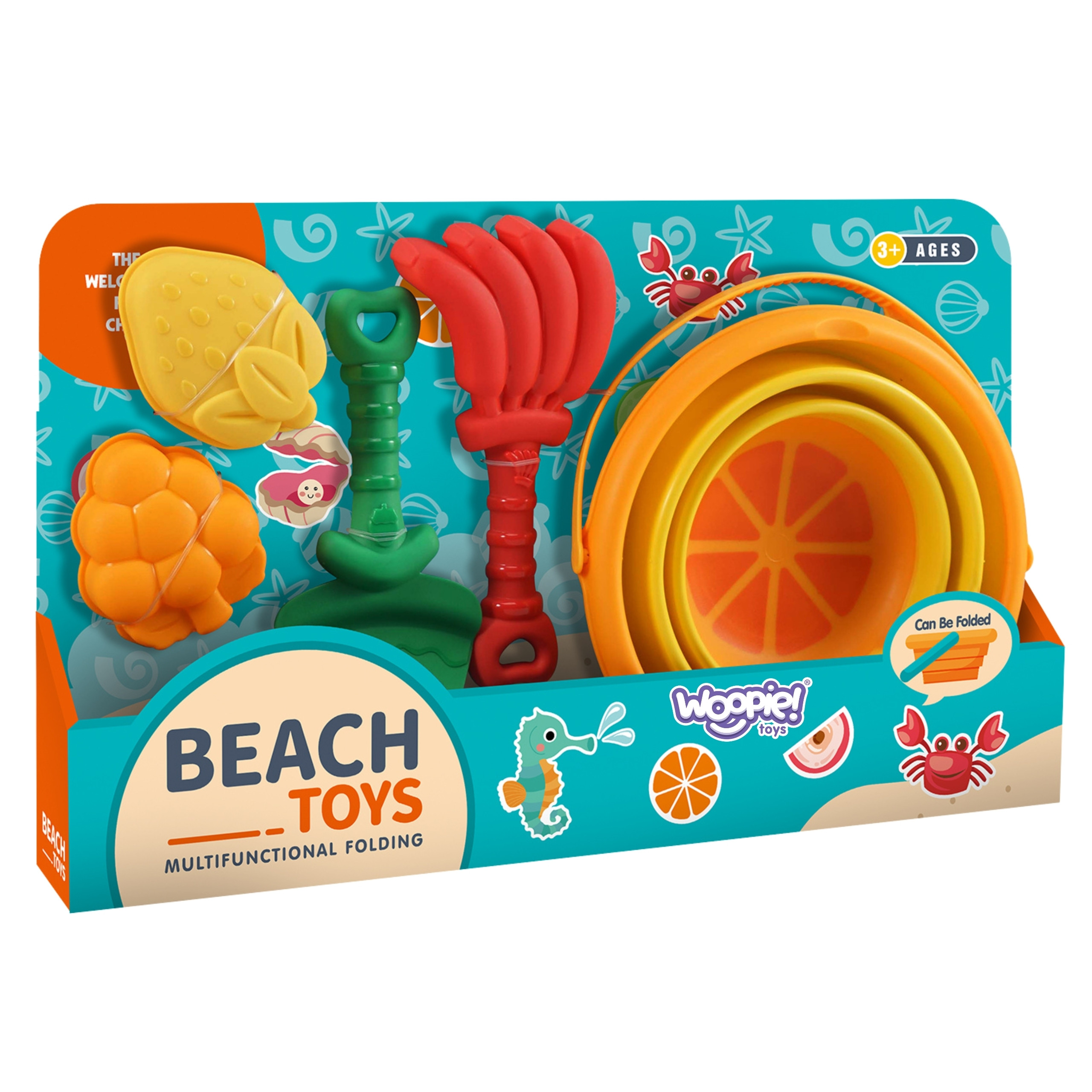 WOOPIE Zestaw Do Zabawy w Piasku Tropikalne Owoce Składane Wiaderko z Grabkami Łopatką Foremkami