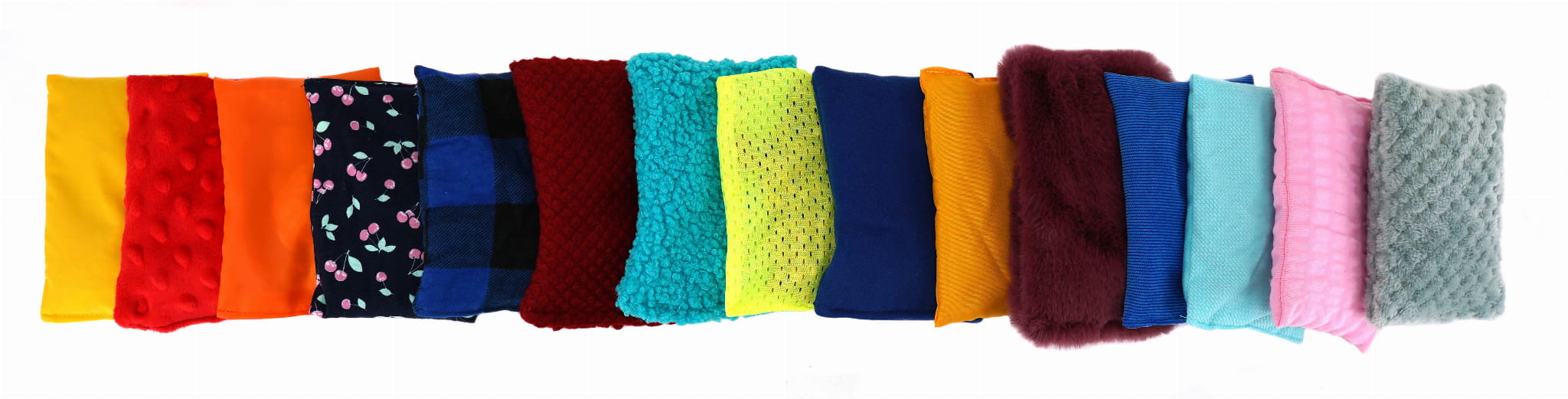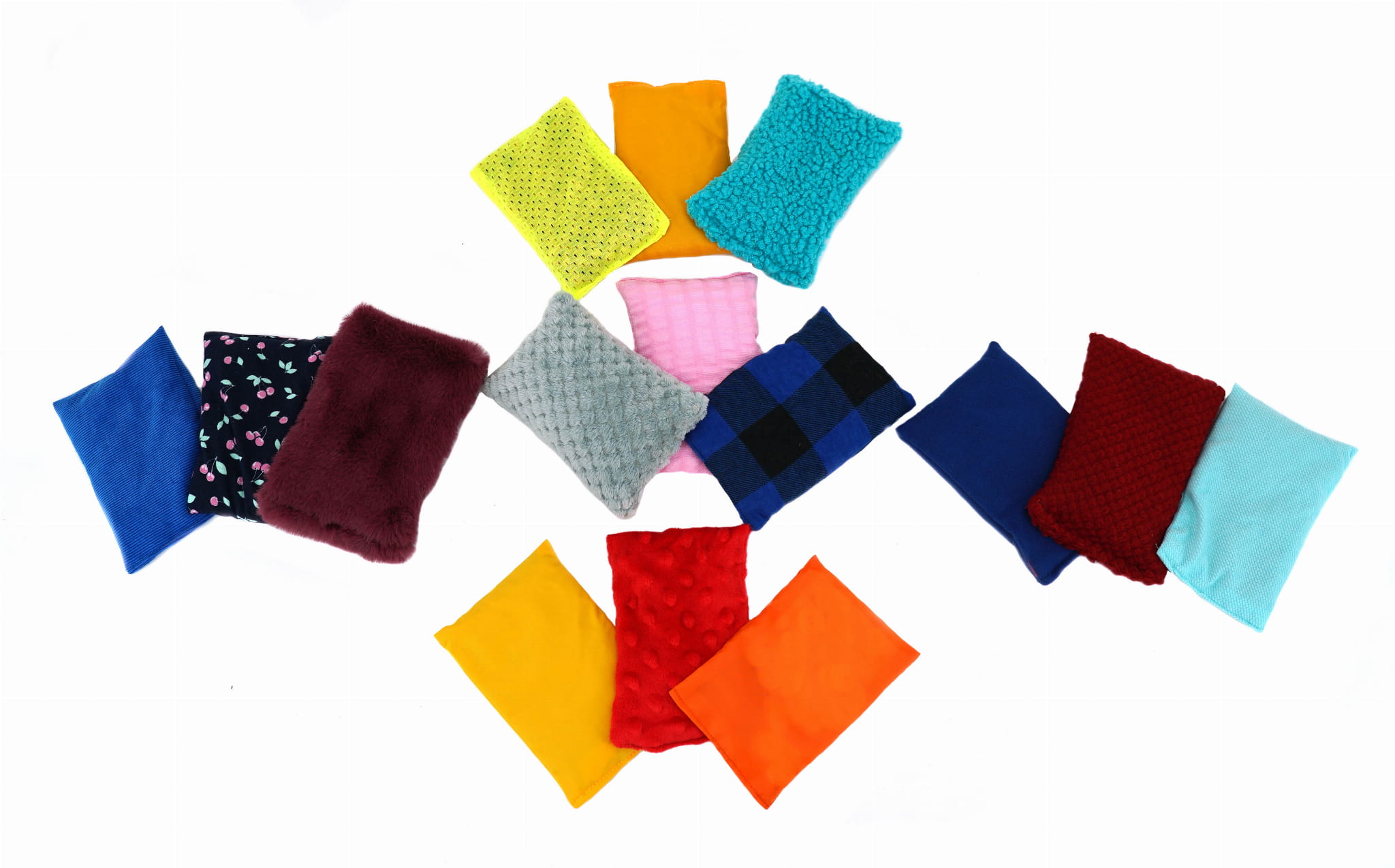 Woreczki sensoryczne wykonane są ze starannie dobranych wielokolorowych tkanin, o różnej fakturze, zaś w środku znajdują się same niespodzianki: