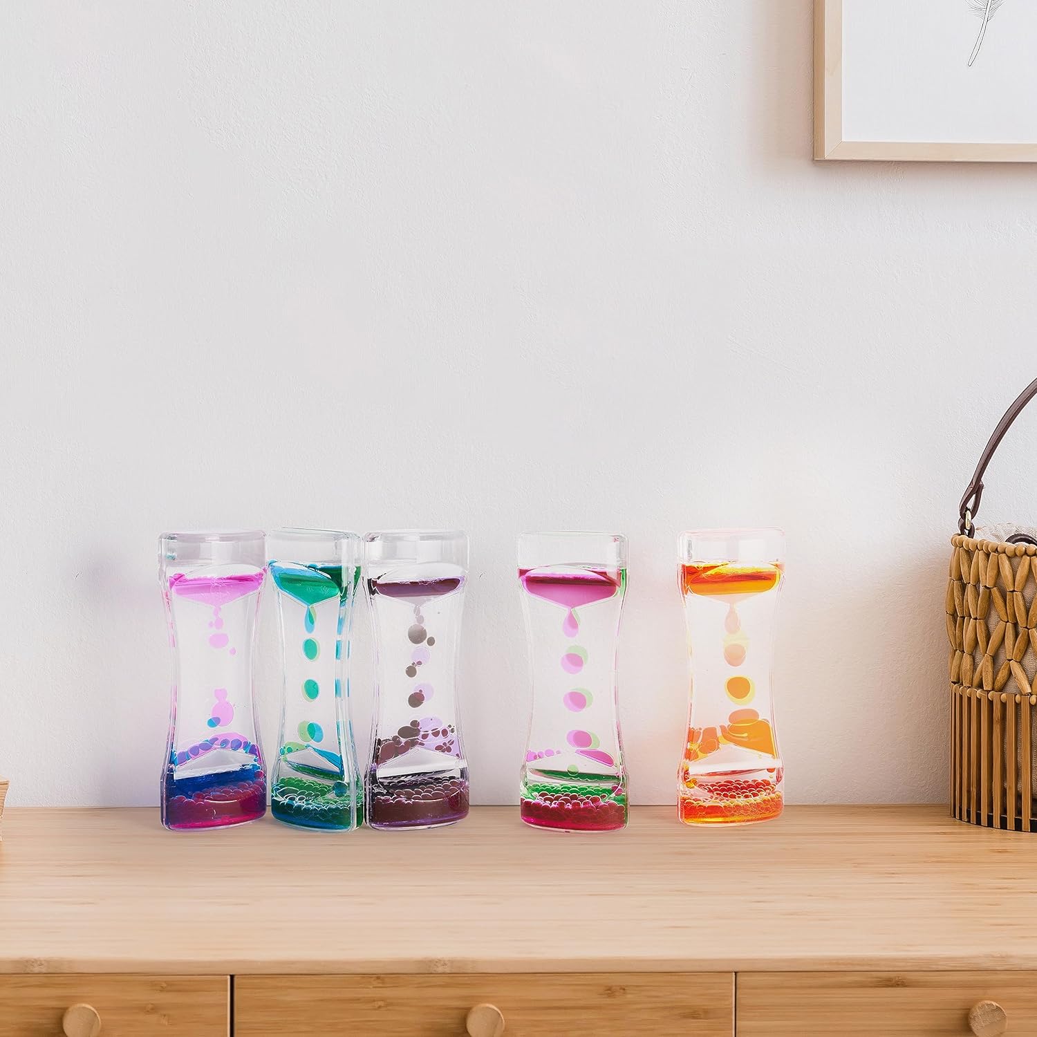 Odkryj fascynujący świat płynnych klepsydr z żelowym wnętrzem! Nasz zestaw zawiera 5 kolorowych klepsydr, które nie tylko wzbudzają ciekawość, ale również wspierają rozwój dzieci. Idealne do terapii integracji sensorycznej oraz jako narzędzie do ćwiczenia cierpliwości i koncentracji. Dzięki nim dzieci mogą obserwować spływający żel, co nie tylko relaksuje, ale także zachęca do eksploracji i nauki poprzez zabawę. Doskonałe narzędzie dla każdego nauczyciela czy terapeuty poszukującego kreatywnych metod wspierających rozwój dzieci.